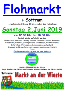 Am Sonntag 2.Juni 2019 findet in Sottrum der 13. „Flohmarkt an der Wieste“ von 12 bis 18 Uhr statt. In diesem Jahr ist es besonders aktuell, da der Zweck für den der Erlös aus den Standgeldern gedacht ist schon fast vor der Tür steht. Im September kommen die „young americans“ um an unserer Schule bereits zum 4. Mal einen Workshop abzuhalten. Alle drei Jahre kommen sie.