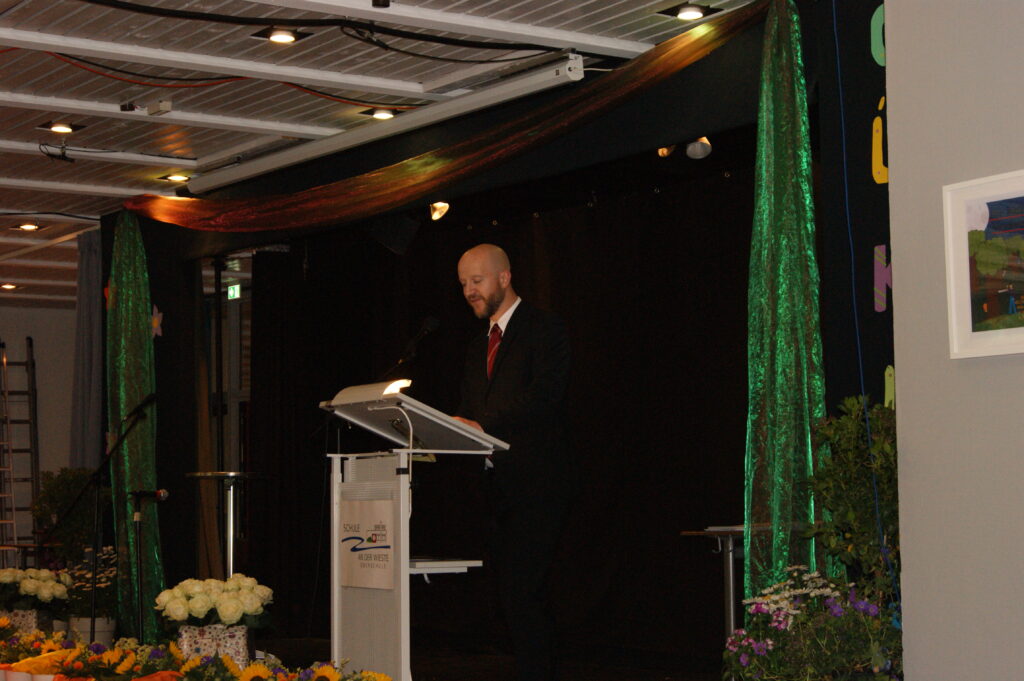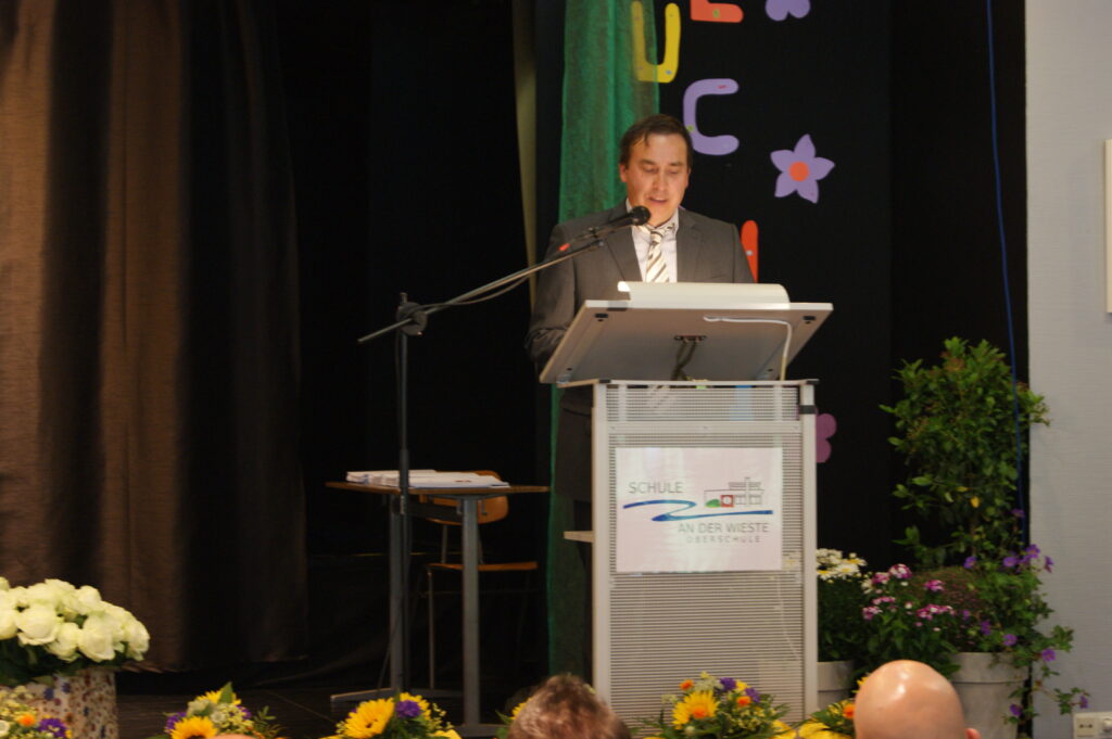 Natürlich stand es Herrn Barth als Schulleiter als erstes zu die Leistung der Abschlussschüler zu würdigen und ihnen die Ehre einer Rede zu erweisen.