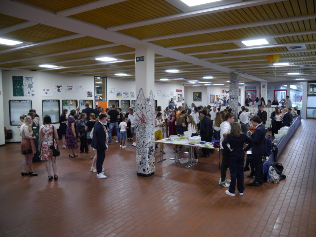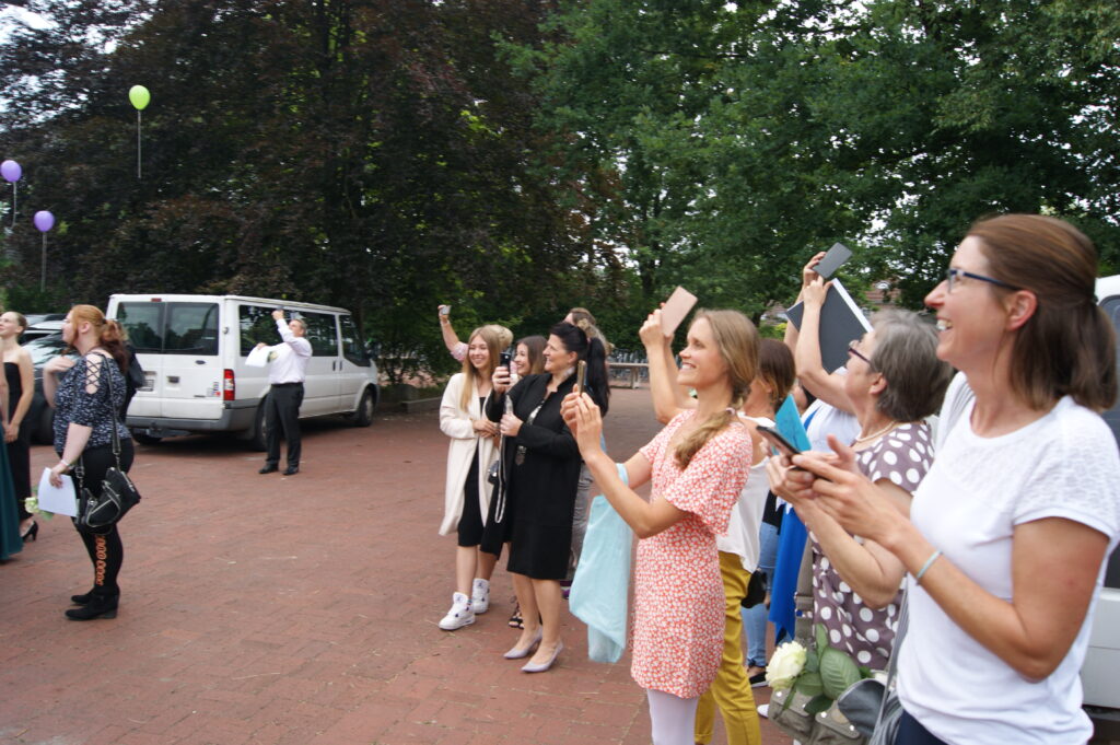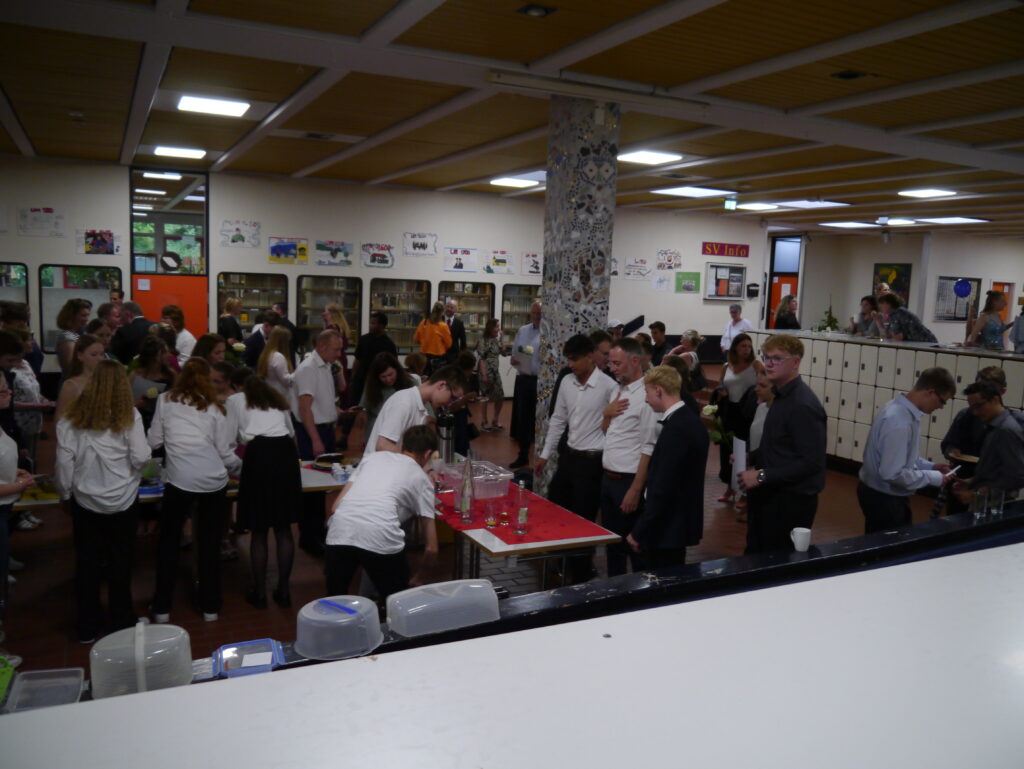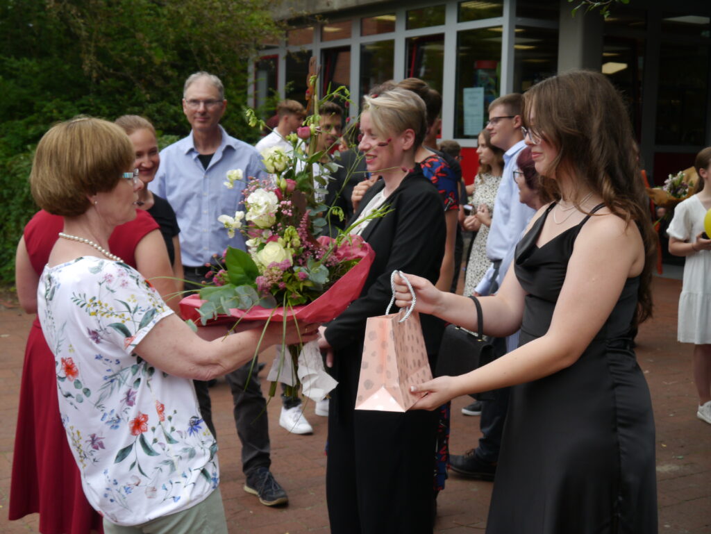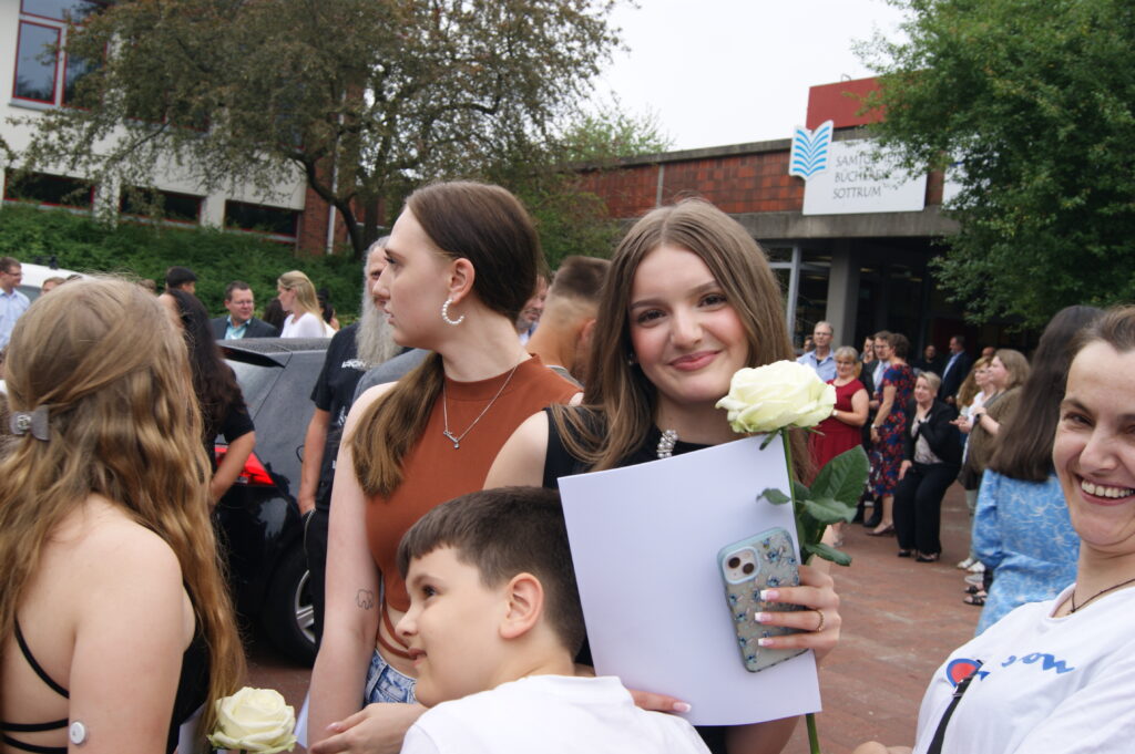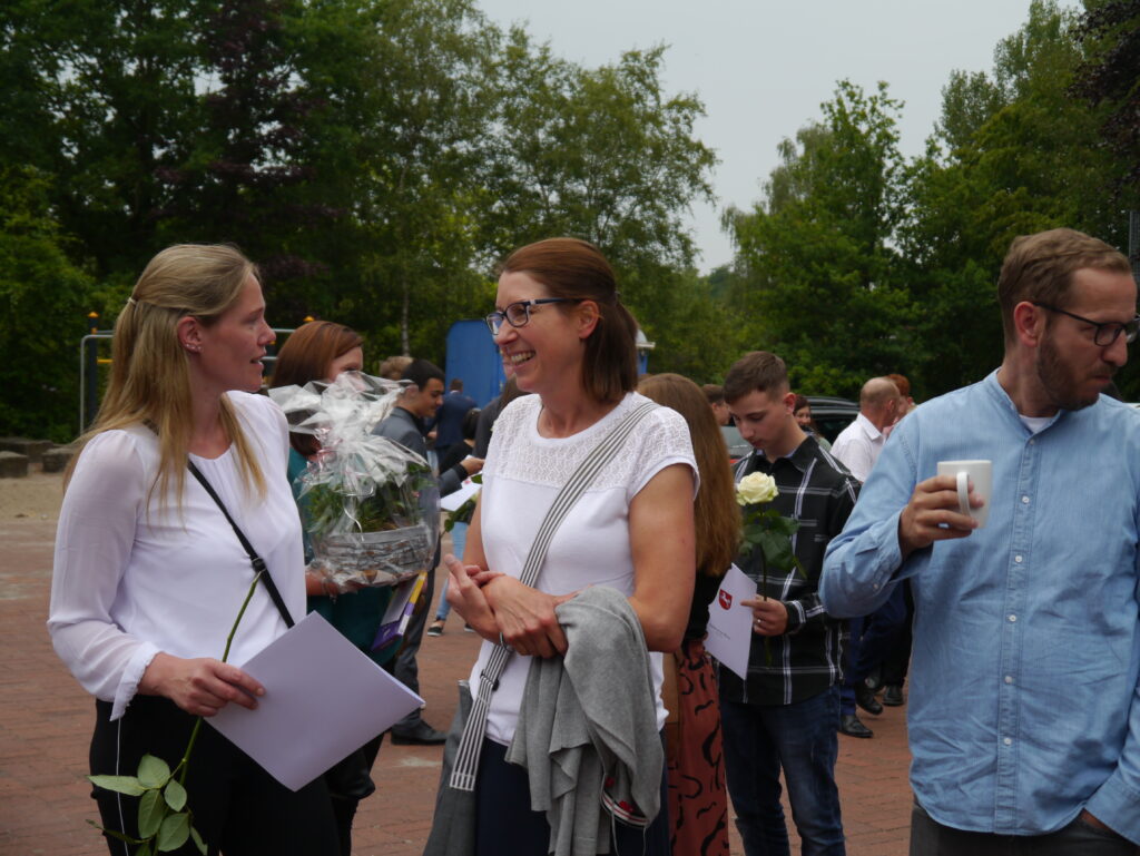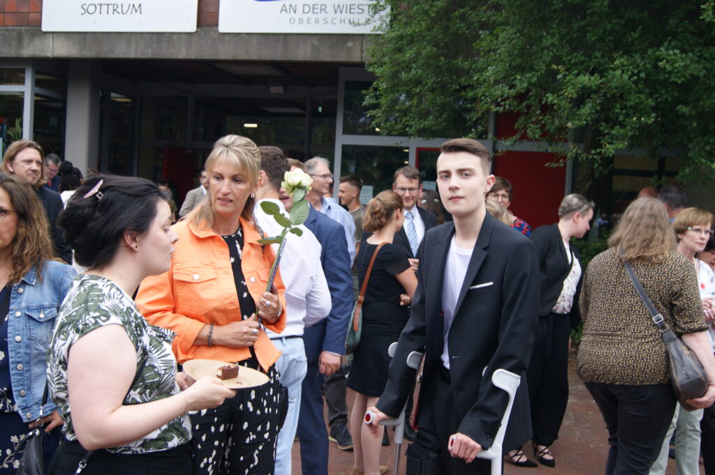 Nach der Zeugnisvergabe und der Verleihung der Ehrennadeln (http://obs-sottrum.de/ehrennadelverleihung-2022-23-klassen-5-10/) ging es nach draußen, man ließ die Absolventen abheben und genoss das Event in einem lockeren Beisammensein.