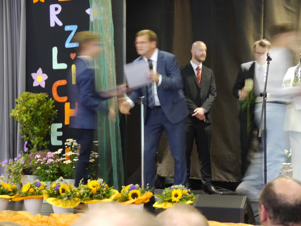 Am Ende wollten es sich auch Herr Schäffer und Herr Boschen nicht nehmen lassen ihrem Jahrgang noch ein paar Worte mit auf den Weg zu geben. Besonders Herr Boschen schien diese Gelegenheit nochmal auskosten zu wollen.