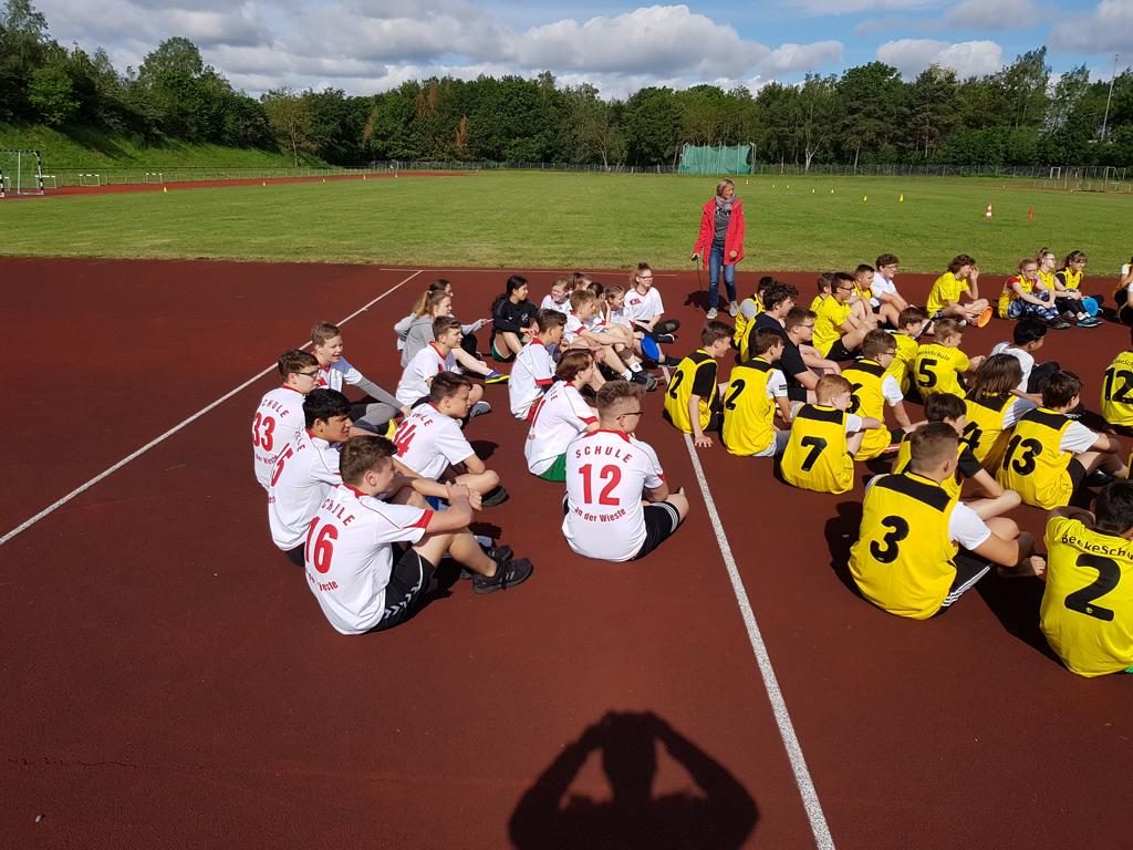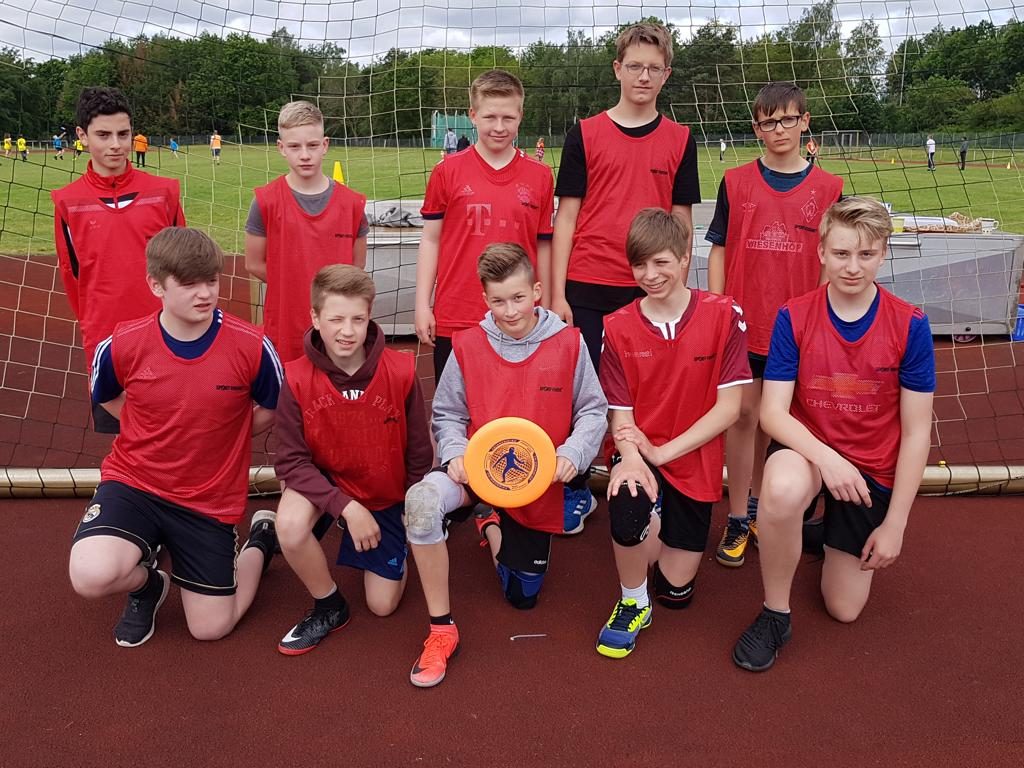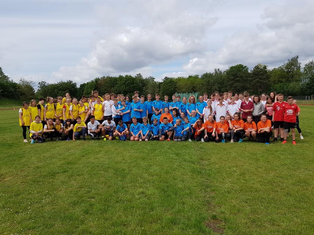 Am Dienstag 28. Mai war es wieder soweit. Die BeekeSchule Scheeßel, die Fintauschule Lauenbrück und die Schule an der Wieste – Oberschule Sottrum trafen sich im Rahmen der Schulsportlige zum gemeinsamen sportlichen Kräftemessen. Diesesmal traten die Mannschaften des 7. und 8. Jahrgangs im Ultimate Frisbee in Lauenbrück gegeneinander an. Bei gutem Wetter konnte das Ganze draußen stattfinden und bereitete allen viel Freude. Auf zwei Spielfeldern parallel nebeneinander spielten die Jungs und die Mädchen in getrennten Gruppen gegeneinander. Da sich die Spieler und Schiedsrichter unterschiedlich intensiv und leider auch mit etwas unterschiedlichen Regeln auf das Turnier vorbereitet hatten, war es anfangs gar nicht so leicht sich aufeinander einzustellen. Aber mit der Zeit haben sich alle Beteiligten auf die geltenden Regeln besinnen und einigen können. Die Spiele waren rasant und intensiv und wurden teilweise auch verbissen geführt. Mit den Ergebnissen insgesamt kann man aus sottrumer Sicht zufrieden sein. Bei den Damen belegte Sottrum die ersten beiden Plätze der sechs Mannschaften und bei den Herren die Plätze 2 und 3 von 6.
