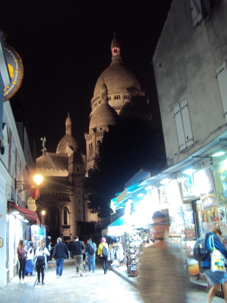 Das Viertel Montmartre war unser Ziel. Wir sind rechtzeitig die 225 Stufen hochgestiegen, damit wir um 20.00h den blinkenden Eiffelturm zu bestaunen konnten. Am Montmartre hatten wir in Kleingruppen Zeit, um letzte Souvenirs zu kaufen, noch einen Crêpe oder etwas anderes zu essen. Es war immer noch schön warm und es machte Spaß, in der Menschenmenge umherzulaufen.